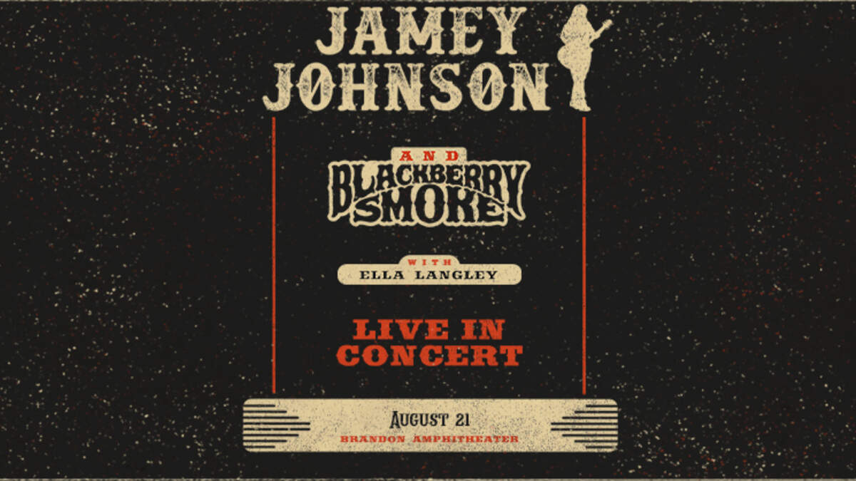 GET READY FOR JAMEY JOHNSON WITH BLACKBERRY SMOKE AND ELLA LANGLEY SUNDAY AUGUST 21, 7:00pm AT THE BRANDON AMPHITHEATER